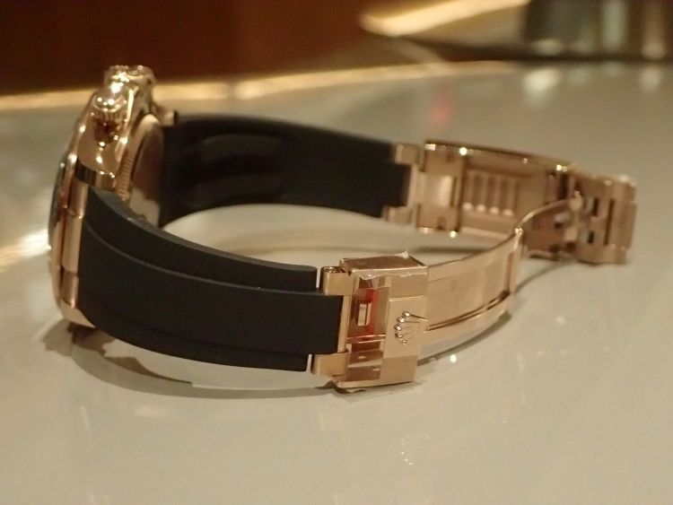 エバーローズゴールド×ラバーベルト仕様はシックでスーツとの相性も抜群