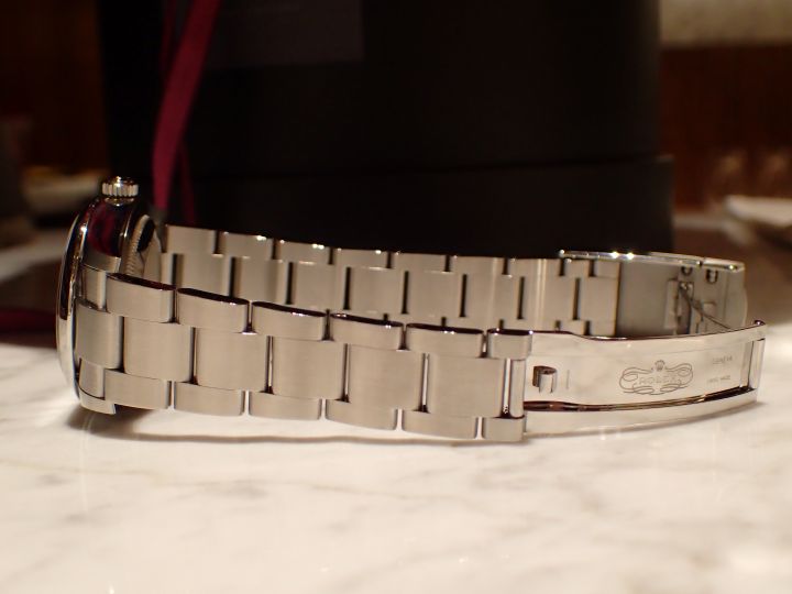 34ミリ径は意外と少ないのが特徴です。男性はもちろん女性でも違和感なく着用できるのも◎。