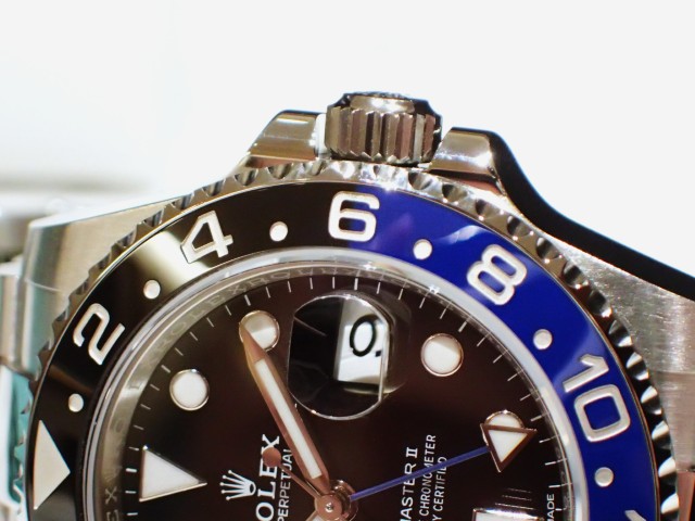 本日は人気のロレックススポーツモデル「GMTマスターII Ref.116710BLNR」をご紹介。