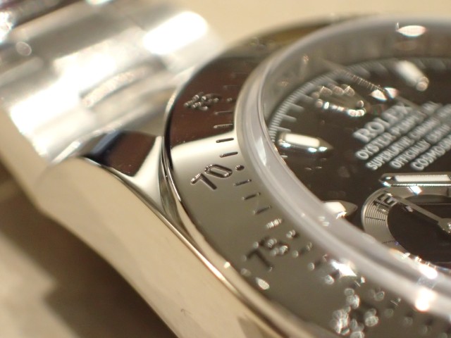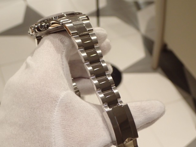 セラミックベゼルとは違った高級感があり、ステンレスベゼルは鏡面仕上げにより、まぶしいまでに輝き