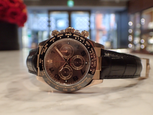 本日はロレックス 金無垢×レザーベルトのデイトナRef.116515LNのご紹介です。