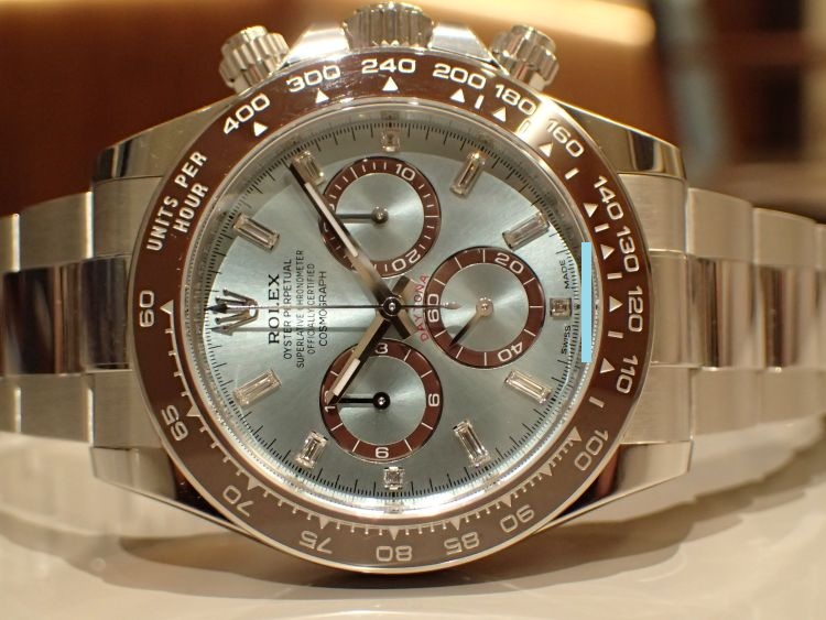 ロレックスの中でもプラチナにしか採用されていないアイスブルーのダイヤルは