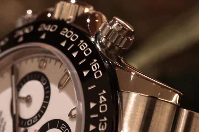 タキメーターベゼル、三つのイン。ダイヤルが相まってメカニカルな雰囲気