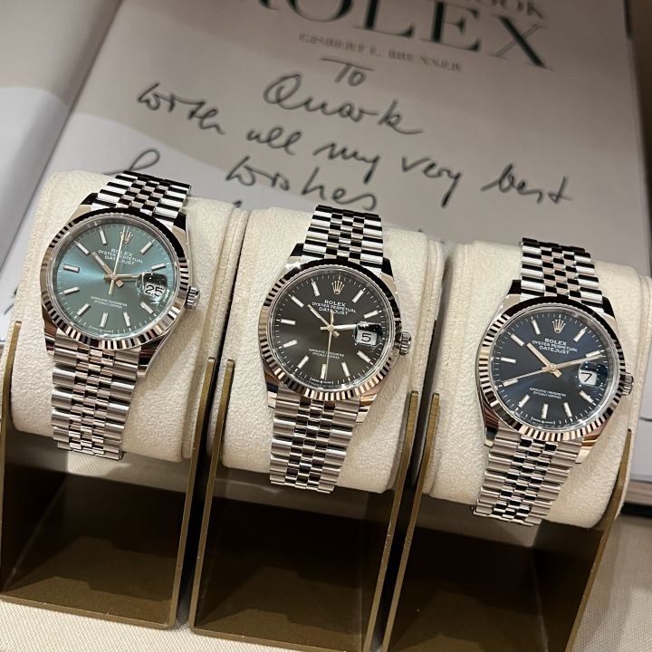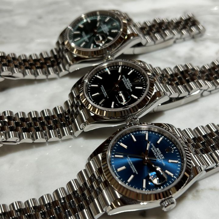 文字盤バリエーションは豊富にあり、今回はサロン大阪にミントグリーン、ブライトブルー、ブライトブラックが