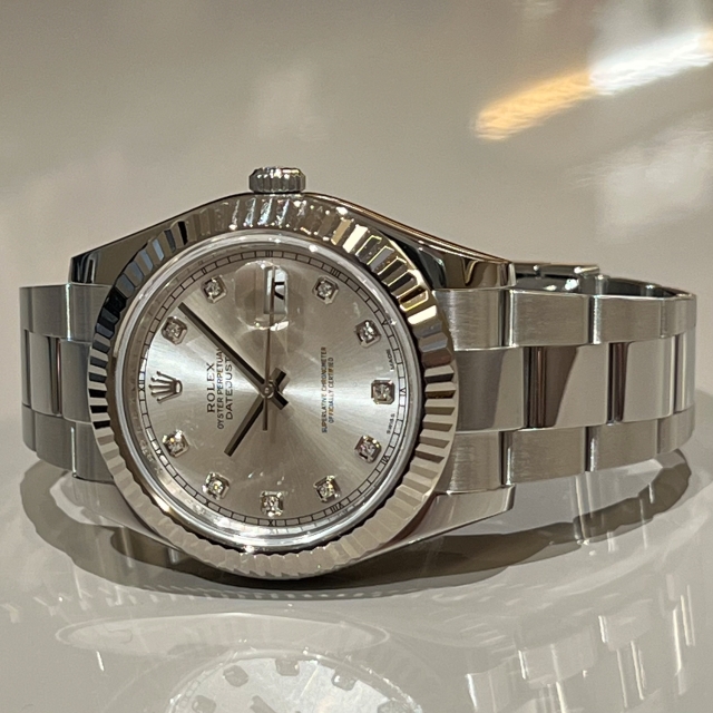 1つ前のデイトジャストとなるモデルであり、ベゼルの幅やオイスターブレスレットのみの展開など