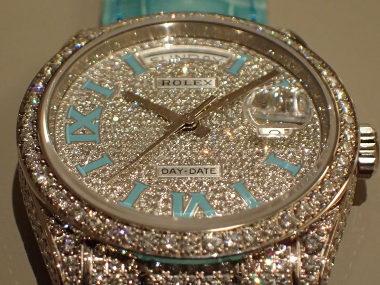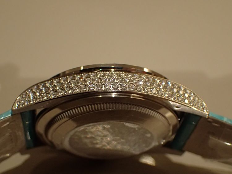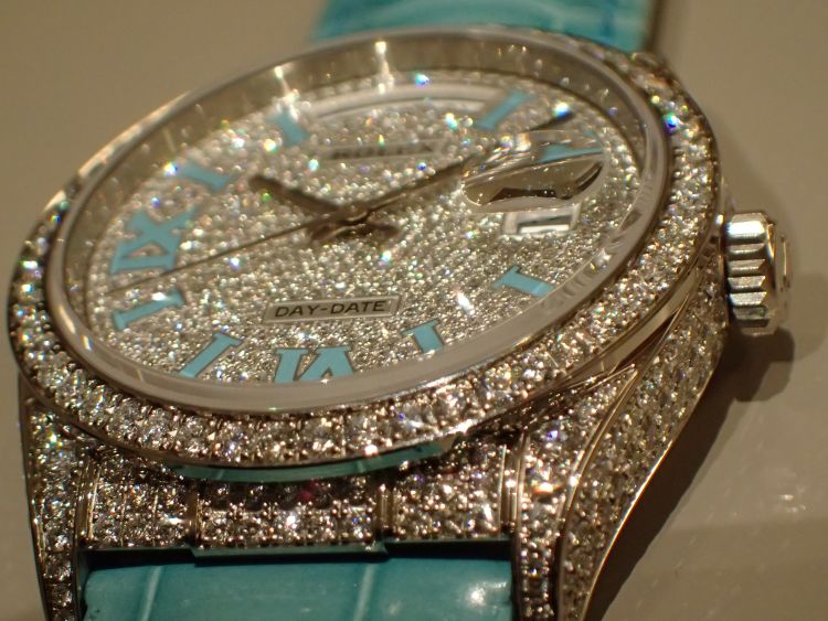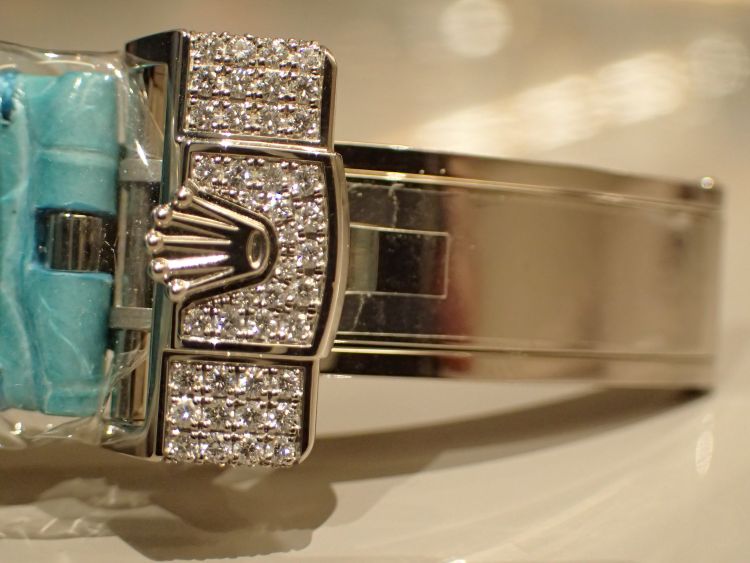 バックルからケースに至るまで惜しげもなくダイヤをセッティング