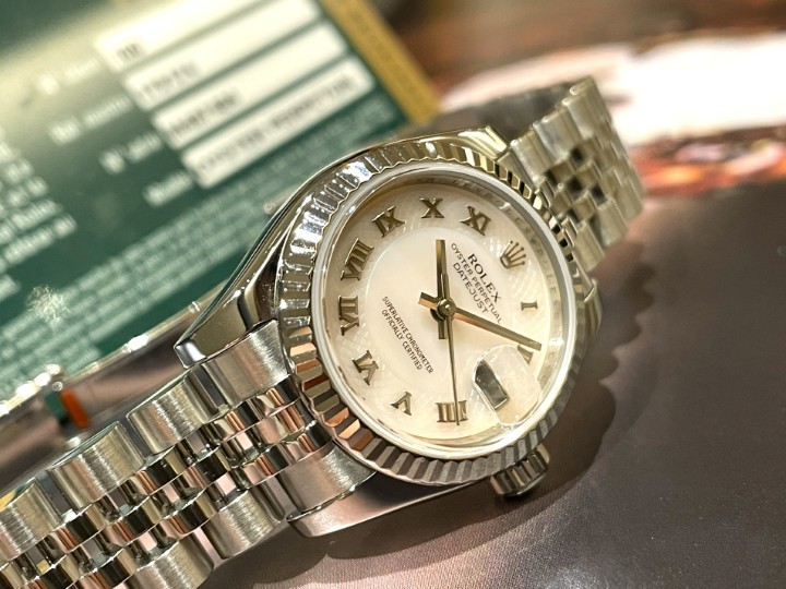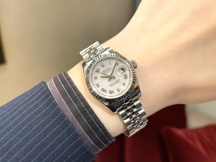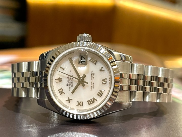 本日は希少なLADY’S DATEJUST「Ref.179174NRD」ピンクシェルデコレーションローマ文字盤を