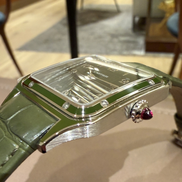 リューズのカボションもプラチナケースであればルビーがセッティングされている