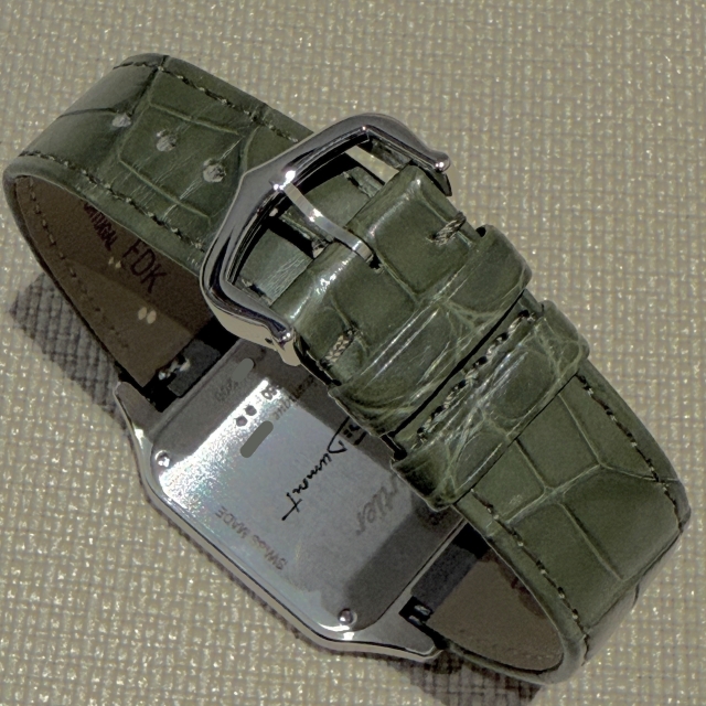 文字盤とベゼル、ラグ同様に革ベルトもグリーンに統一されております。