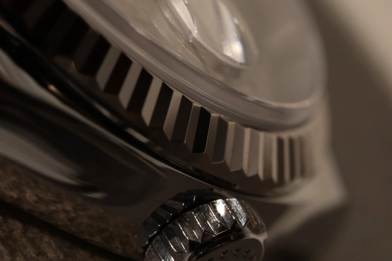 等間隔にカットされた美しい山型のフルーテッドベゼル。