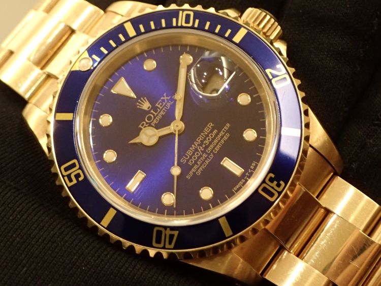 イエローゴールド製のサブマリーナーは黒文字盤と青文字盤の2種類が存在