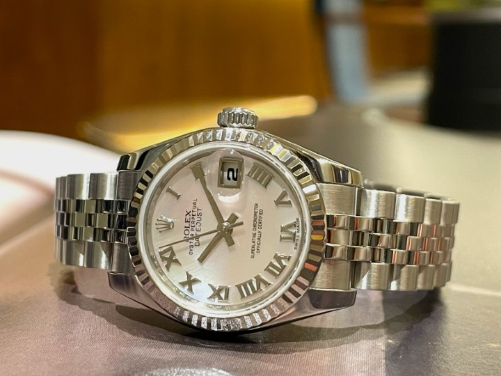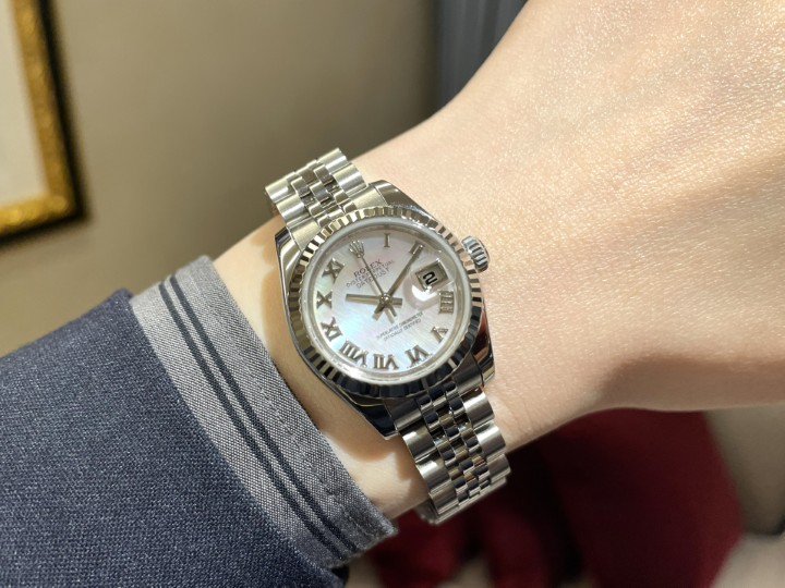 本日ご紹介する時計はロレックスのレディースデイトジャスト「Ref.179174NR」、